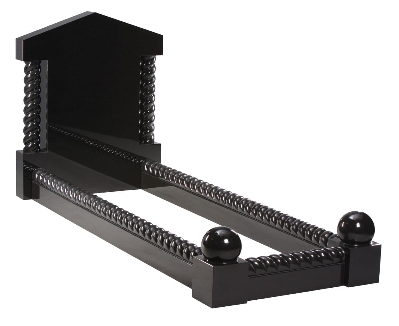 The WG107 Cemetery Kerb Set Memorial features distinctive barley twist columns that carry historical significance dating back to the Temple of Solomon in Jerusalem. These elegant columns traditionally symbolise wisdom and bring classical architectural elements to this dignified memorial.