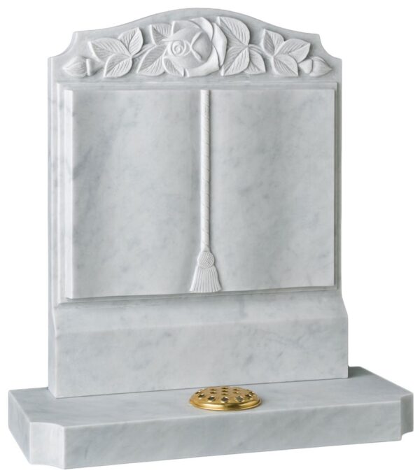 The WG188 Funeral Headstone features an elegant book design in beautiful marble with a delicate flower carving. This timeless memorial symbolises the chapters of a cherished life with grace and dignity. Available in various colours and finishes.