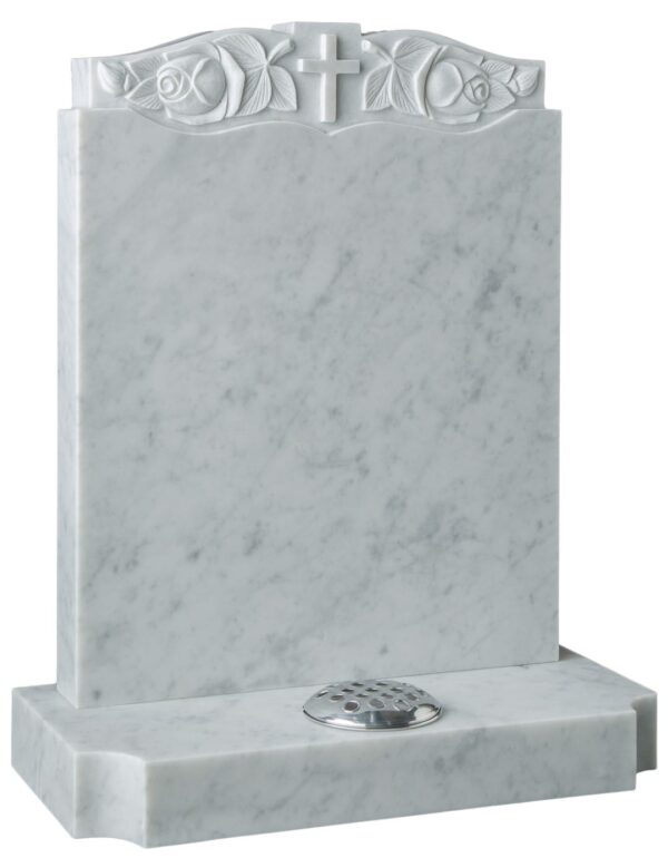The WG189 Funeral Headstone showcases elegant marble craftsmanship with an intricately carved panel that gracefully follows the memorial’s contours. This timeless design offers a dignified tribute to honour your loved one’s memory.