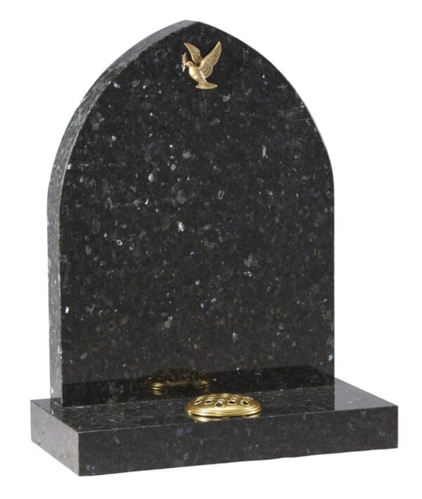 The WG28 Cemetery Memorial in Emerald Pearl granite offers a distinctive variation from the common Blue Pearl. This memorial features an elegant design, enhancing its unique appearance while creating a lasting tribute to your loved one.