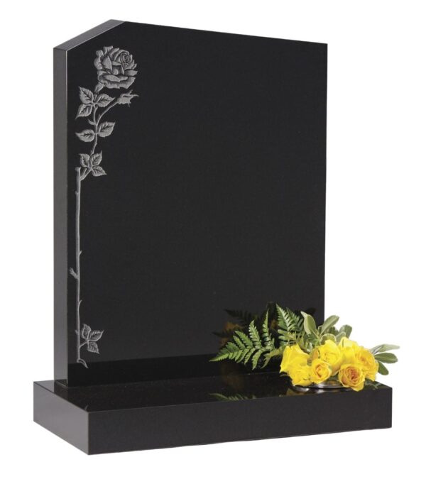 The WG34 Cemetery Memorial offers a dignified design with an offset peon top and a tasteful climbing rose ornament. Crafted to create a timeless tribute that honours your loved one’s memory with elegance and respect.