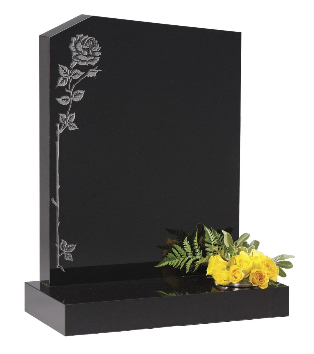 The WG34 Cemetery Memorial combines classic elegance with natural symbolism to create a dignified resting place marker. This memorial features an offset peon top design that provides a distinctive silhouette, complemented by a single climbing rose ornament that symbolises love, growth and the enduring connection to those we've lost.