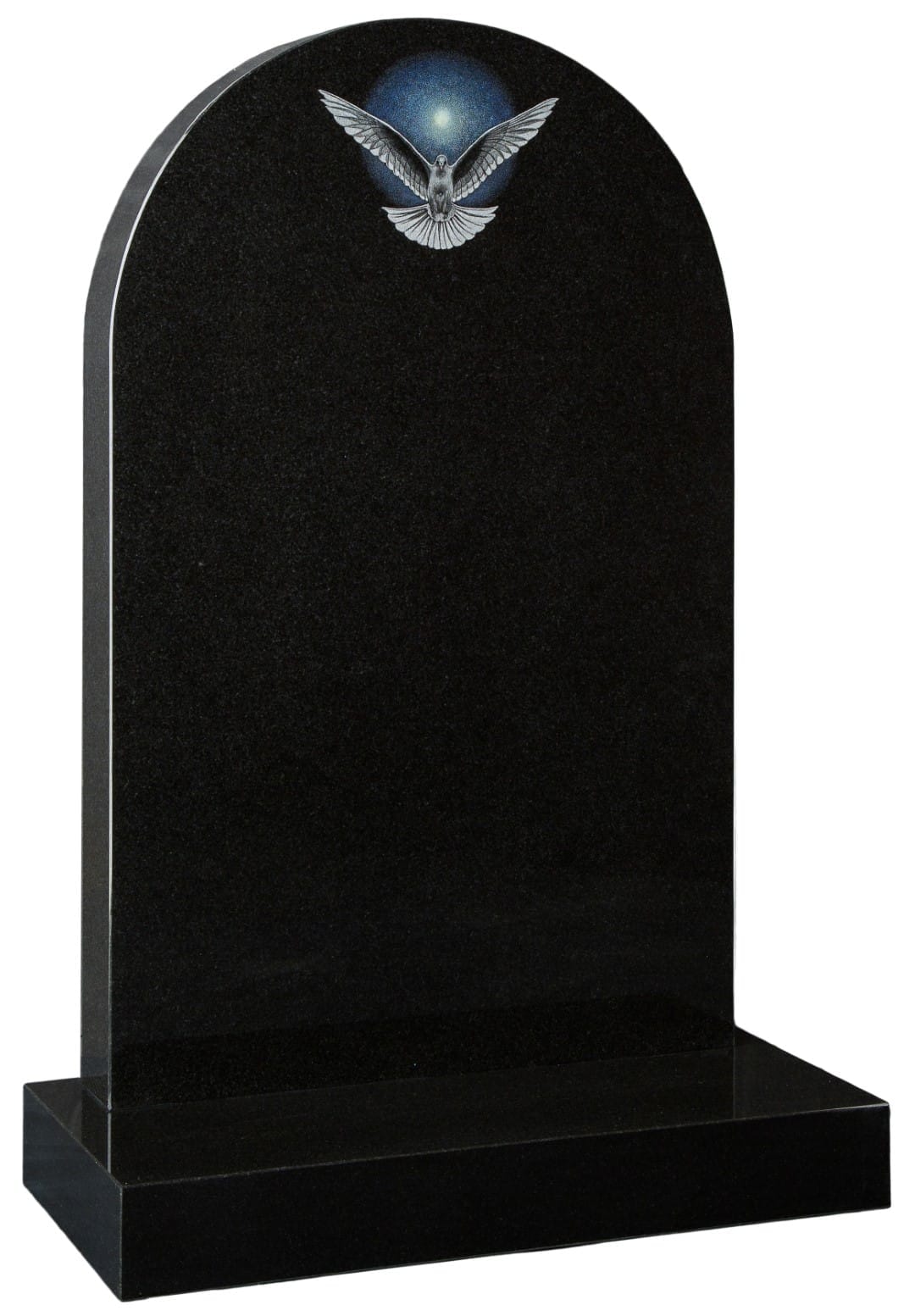 The WG44 Cemetery Memorial features a gentle half-round top design with a delicate laser-etched dove motif. This dignified headstone offers a peaceful tribute to honour your loved one’s memory with understated elegance.