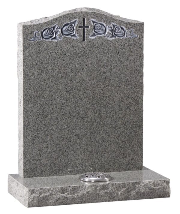 The WG70 hand-carved memorial features exquisite roses on either side of a Latin cross, expertly highlighted to enhance the detailed craftsmanship. Crafted in enduring granite, this dignified headstone offers a timeless tribute to your loved one.